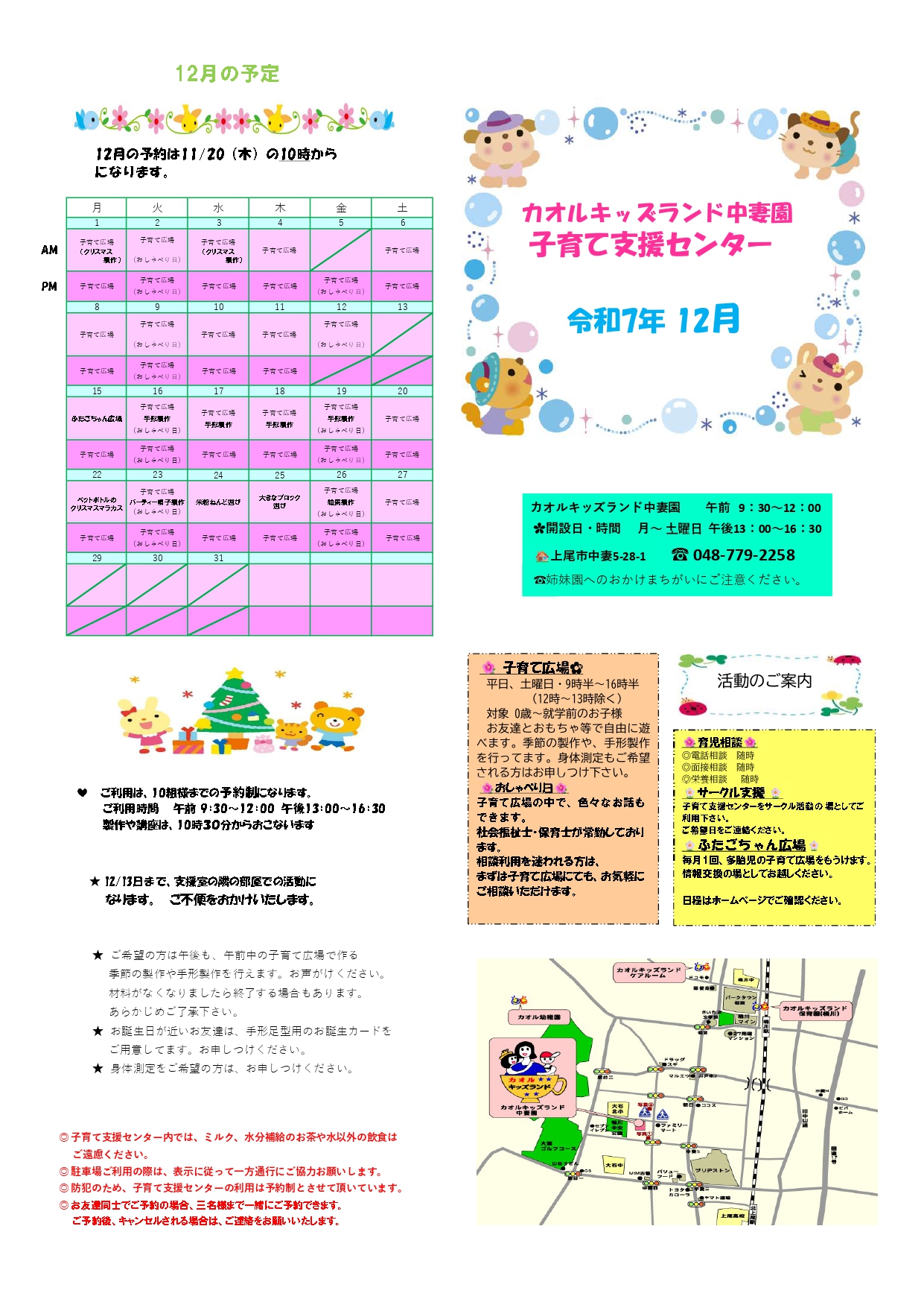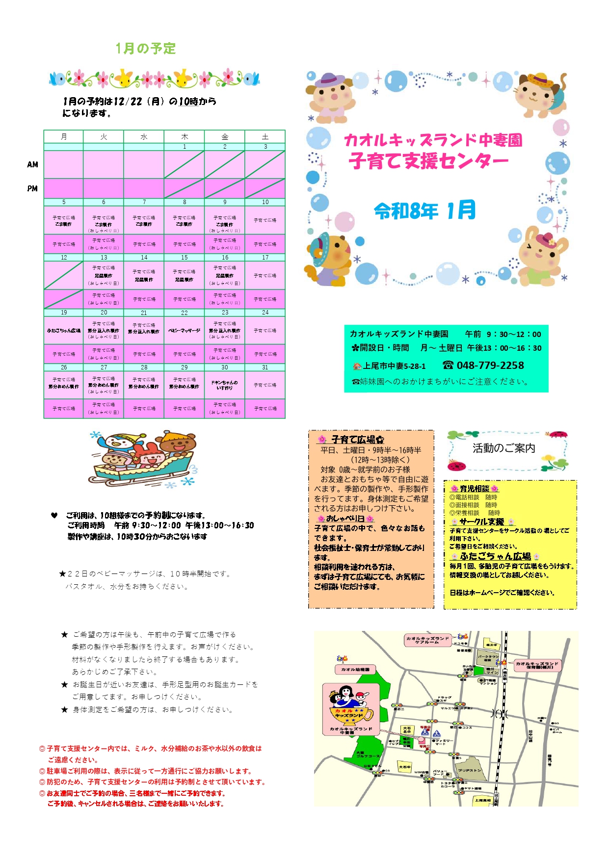 カオルキッズランド中妻園子育て支援センターは、地域の子育て家庭のつどいの場所として、さまざまな活動を行っています。